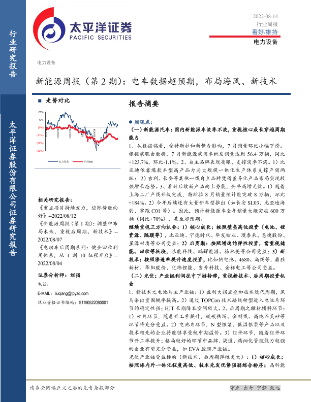 【太平洋证券】【20220814】20220814-太平洋-新能源周报(第2期):电车数据超预期,布局海风、新技术-32页