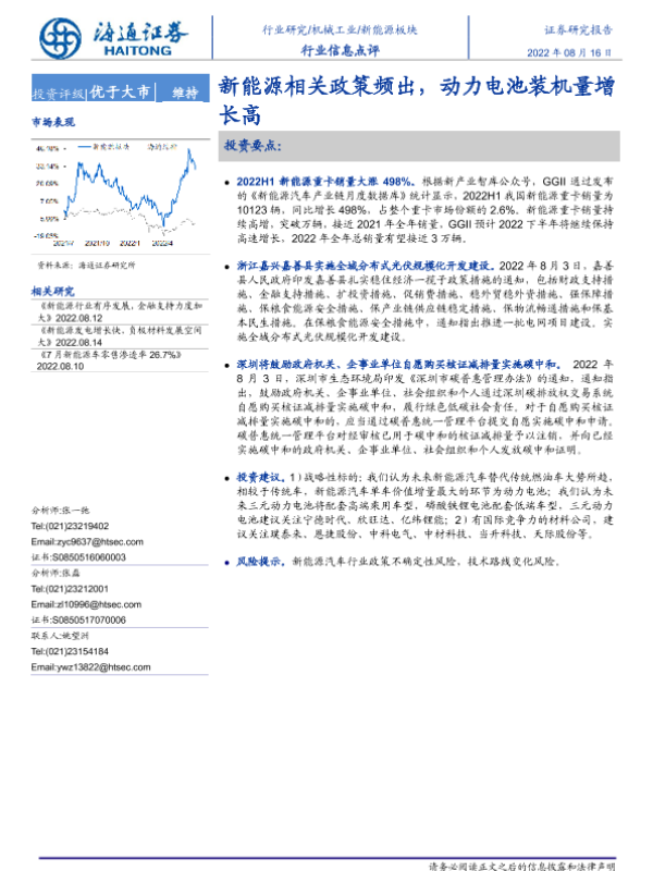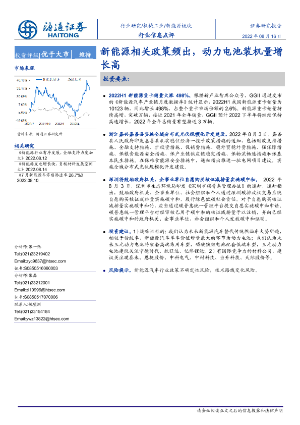 【海通证券】【20220816】新能源板块行业信息点评:新能源相关政策频出,动力电池装机量增长高-2页
