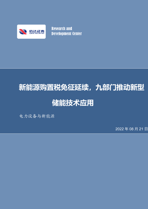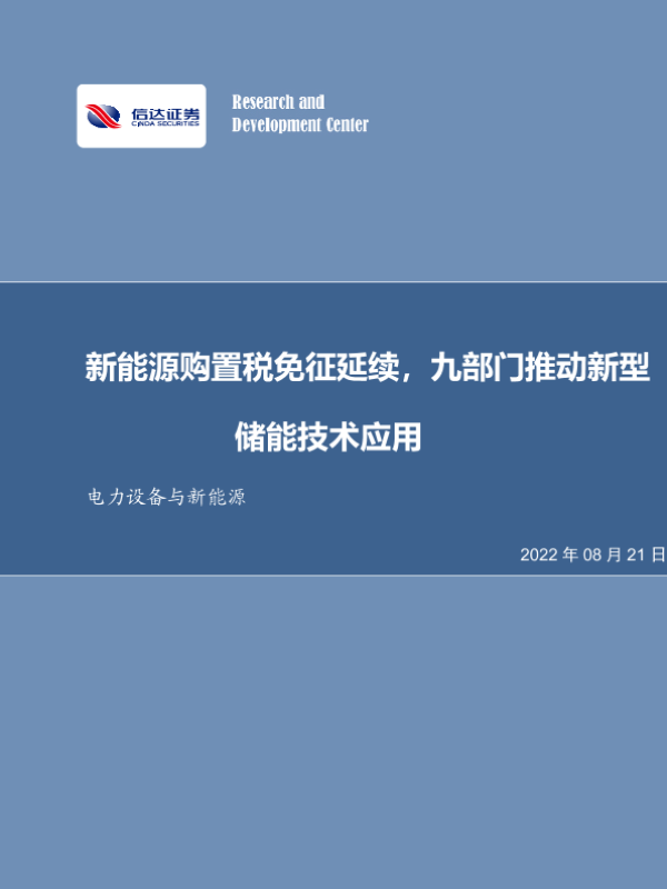 【信达证券】【20220821】20220821-信达证券-电力设备与新能源行业周报:新能源购置税免征延续,九部门推动新型储能技术应用-10页