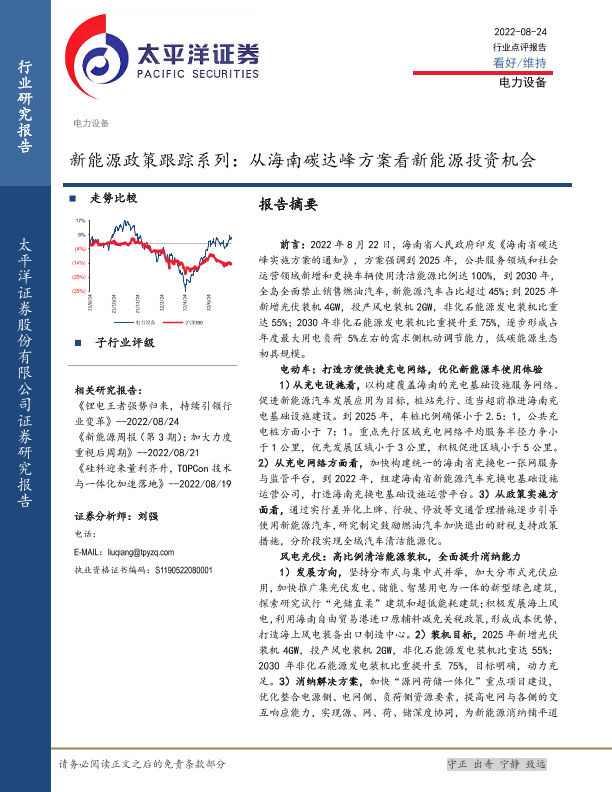 【太平洋证券】【20220824】电力设备:新能源政策跟踪系列:从海南碳达峰方案看新能源投资机会-5页