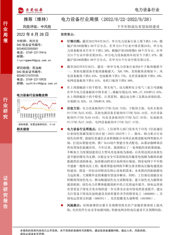 【东莞证券】【20220828】电力设备行业周报:下半年特高压有望加快建设-14页