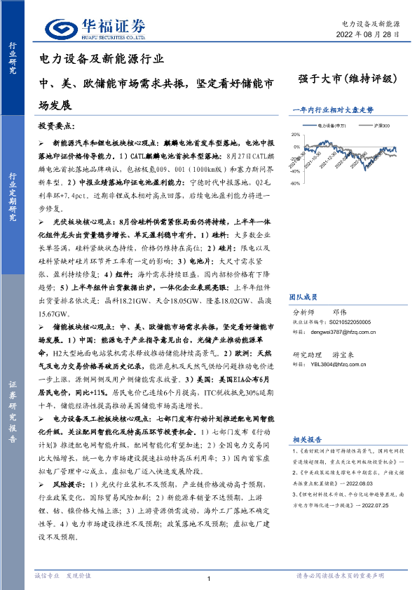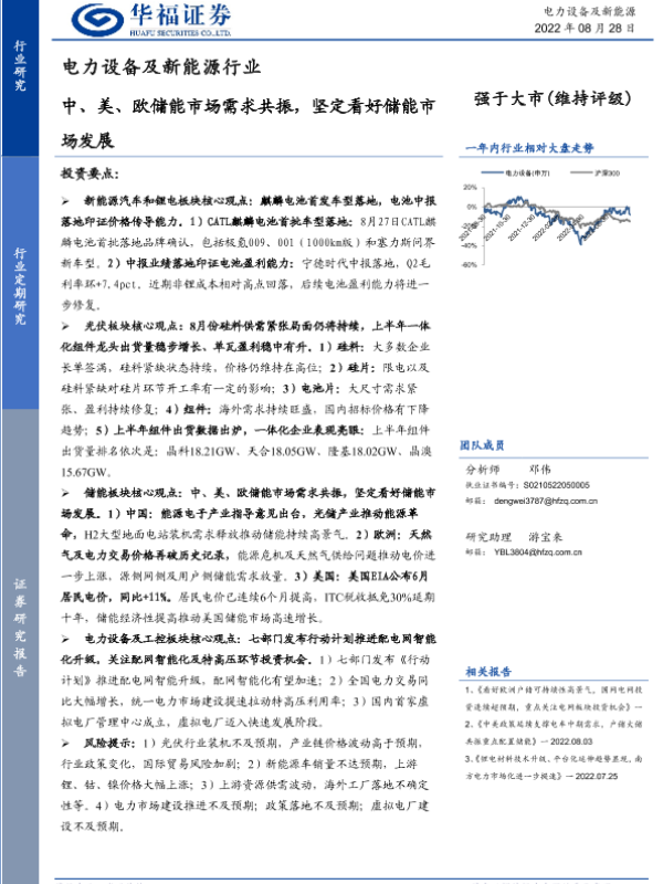 【华福证券】【20220828】电力设备及新能源行业:中、美、欧储能市场需求共振,坚定看好储能市场发展-9页