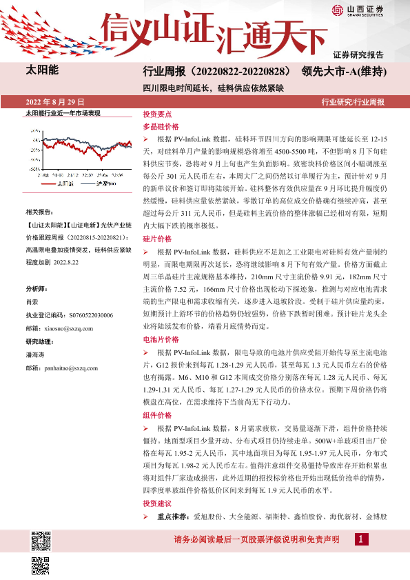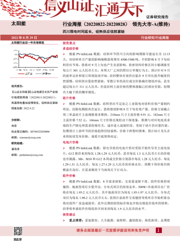 【山西证券】【20220829】20220829-山西证券-太阳能行业周报:四川限电时间延长,硅料供应依然紧缺-4页