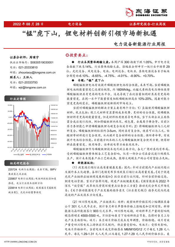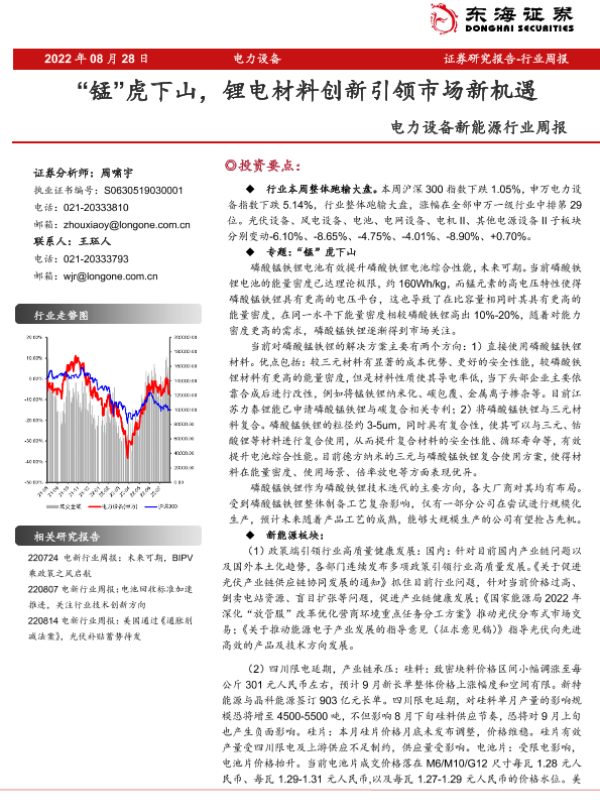 【东海证券】【20220828】电力设备新能源行业周报:“锰”虎下山,锂电材料创新引领市场新机遇-31页