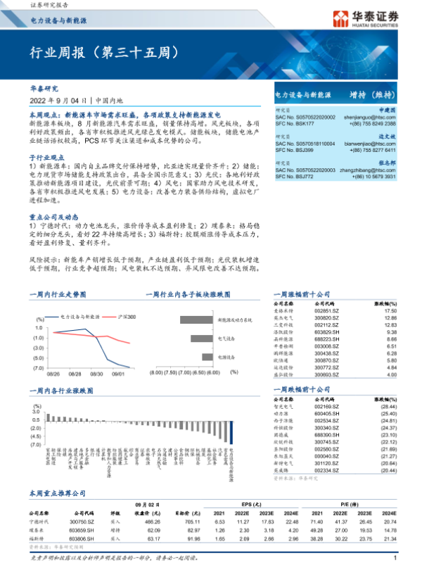 【华泰证券】【20220904】电力设备与新能源行业周报(第三十五周)-27页