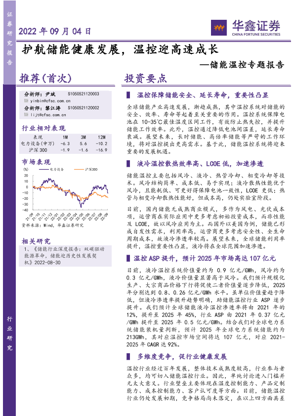 【华鑫证券】【20220904】护航储能健康发展,温控迎高速成长——储能温控专题报告-21页