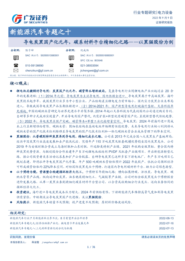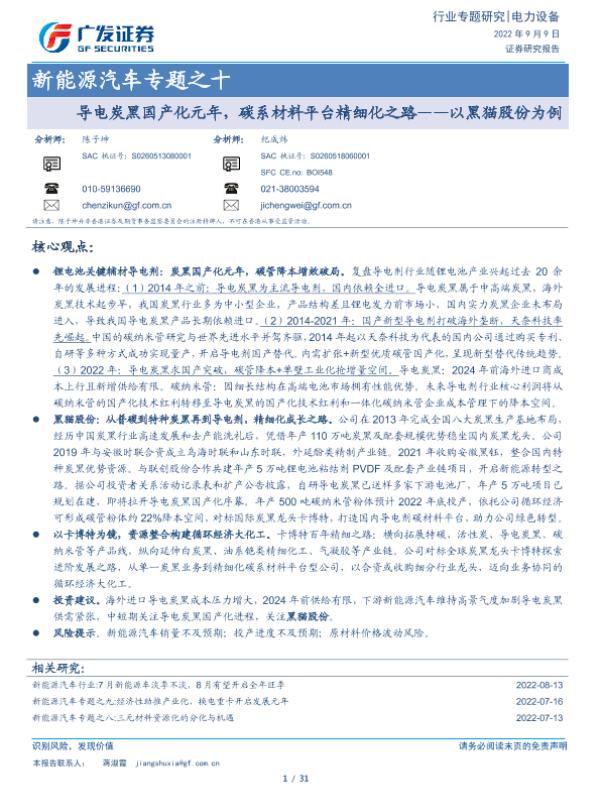 【广发证券】【20220909】导电炭黑国产化元年,碳系材料平台精细化之路——以黑猫股份为例-31页