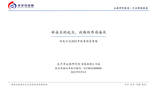 【太平洋证券】【20220909】风电行业2022年秋季投资策略:新成长的起点,战略性布局海风-31页