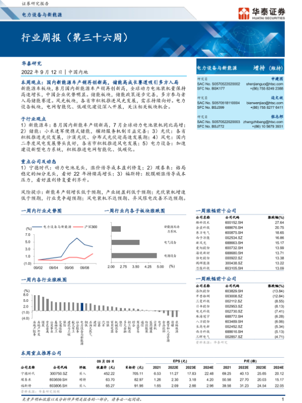 【华泰证券】【20220912】电力设备与新能源行业周报(第三十六周)-24页
