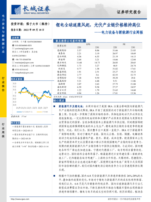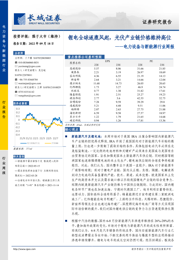 【长城证券】【20220918】20220918-长城证券-电力设备与新能源行业周报:锂电全球逐鹿风起,光伏产业链价格维持高位-14页
