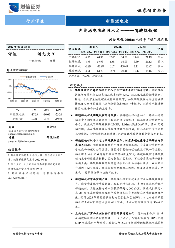 【财信证券】【20220923】新能源电池新技术之一——磷酸锰铁锂:续航里程700km电动车“锰”想启航-21页