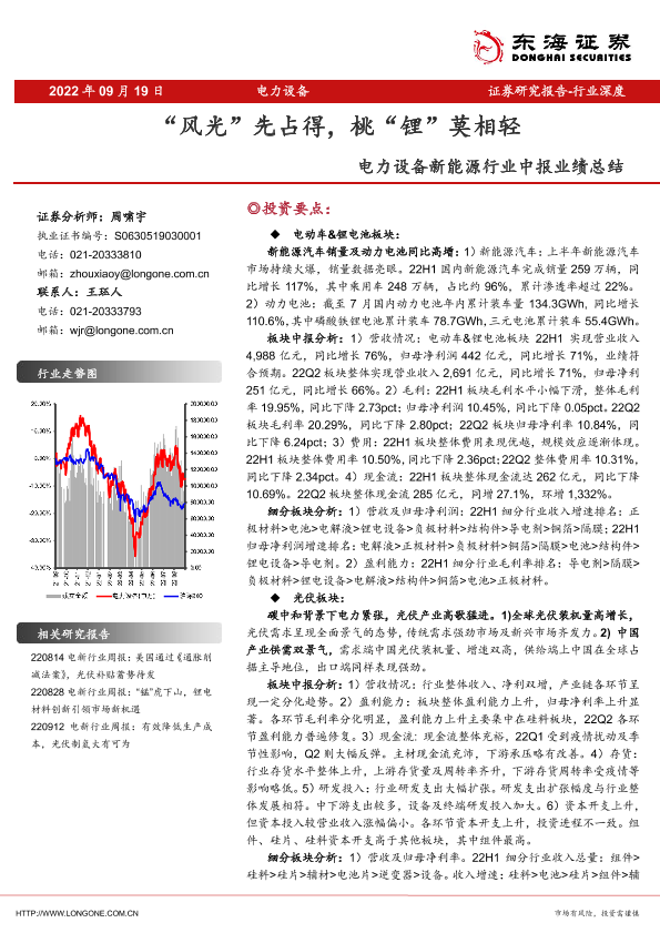 【东海证券】【20220919】电力设备新能源行业中报业绩总结:“风光”先占得,桃“锂”莫相轻-54页