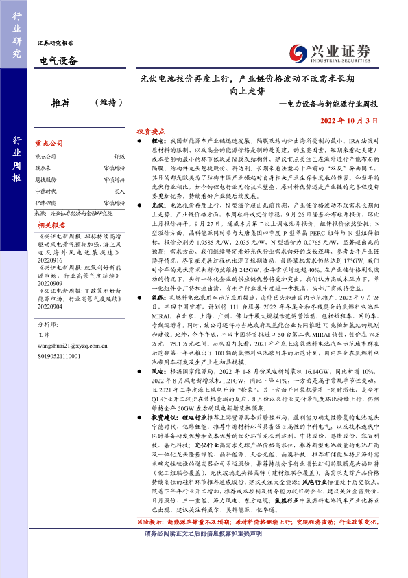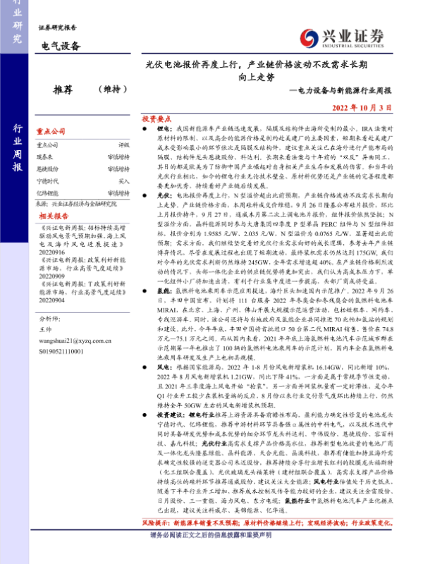 【兴业证券】【20221003】20221003-兴业证券-电力设备与新能源行业周报:光伏电池报价再度上行,产业链价格波动不改需求长期向上走势-20页
