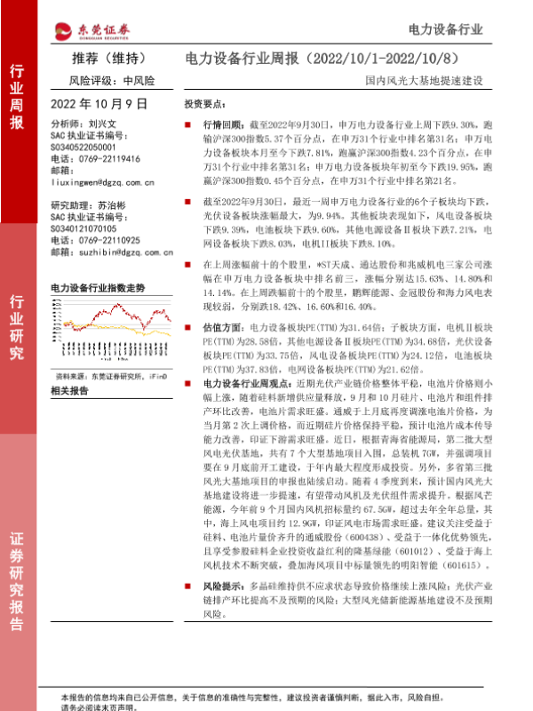 【东莞证券】【20221009】电力设备行业周报:国内风光大基地提速建设-13页
