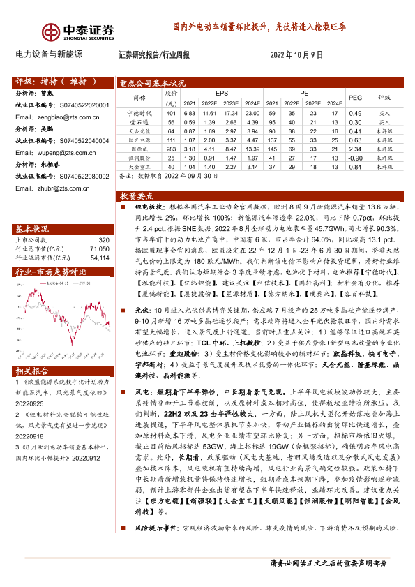 【中泰证券】【20221009】电力设备与新能源行业周报:国内外电动车销量环比提升,光伏将进入抢装旺季-28页