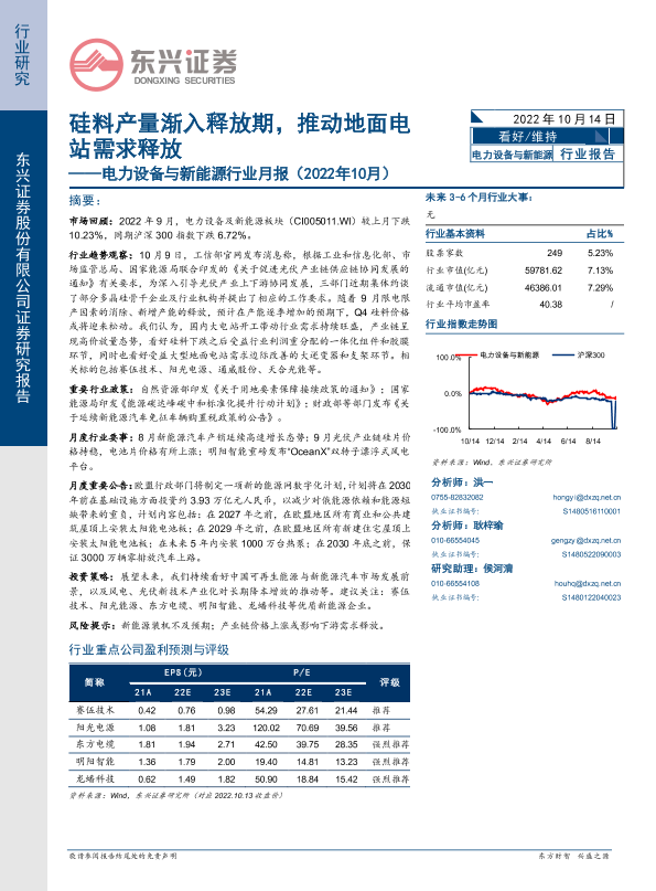 【东兴证券】【20221014】电力设备与新能源行业月报(2022年10月):硅料产量渐入释放期,推动地面电站需求释放-21页