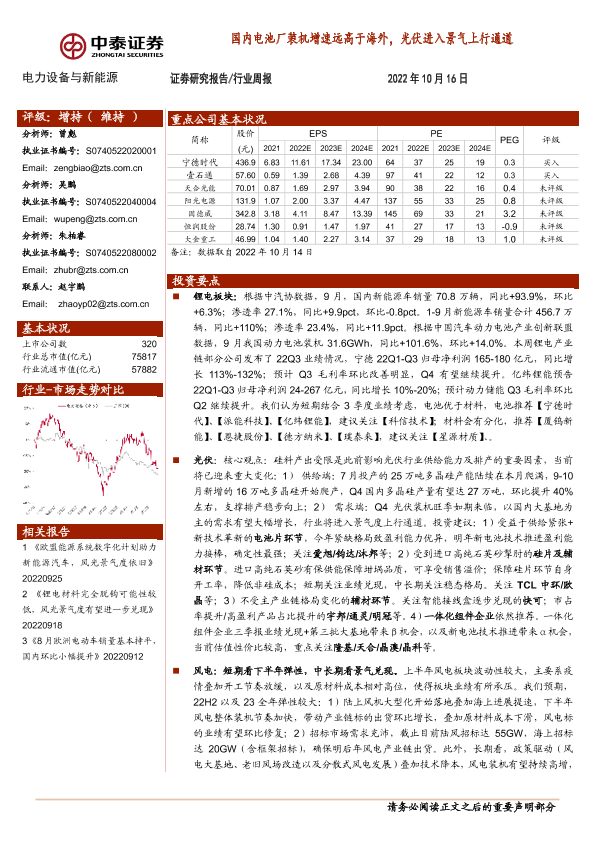 【中泰证券】【20221016】电力设备与新能源行业周报:国内电池厂装机增速远高于海外,光伏进入景气上行通道-29页