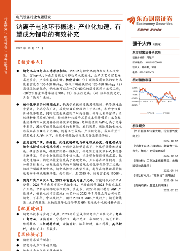 【东方财富证券】【20221017】电气设备行业专题研究:钠离子电池环节概述:产业化加速,有望成为锂电的有效补充-31页