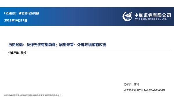 【中航证券】【20221017】20221017-中航证券-新能源行业周报:历史经验:反弹光伏有望领跑;展望未来:外部环境稍有改善-12页