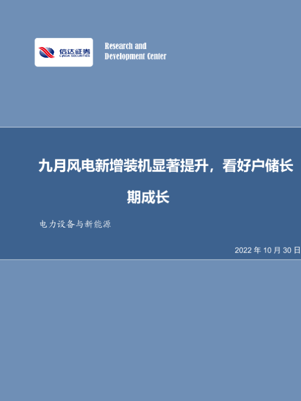 【信达证券】【20221030】20221030-信达证券-电力设备与新能源行业周报:九月风电新增装机显著提升,看好户储长期成长-10页