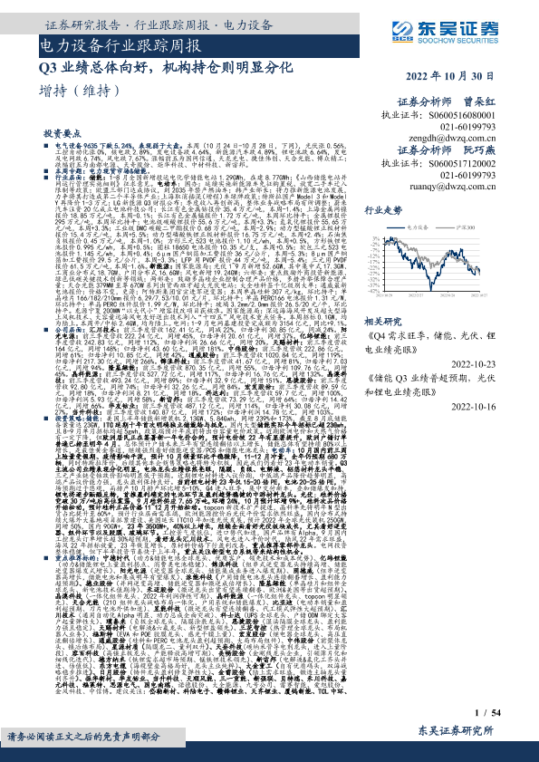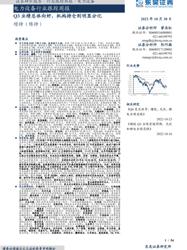 【东吴证券】【20221030】电力设备行业跟踪周报:Q3业绩总体向好,机构持仓则明显分化-54页