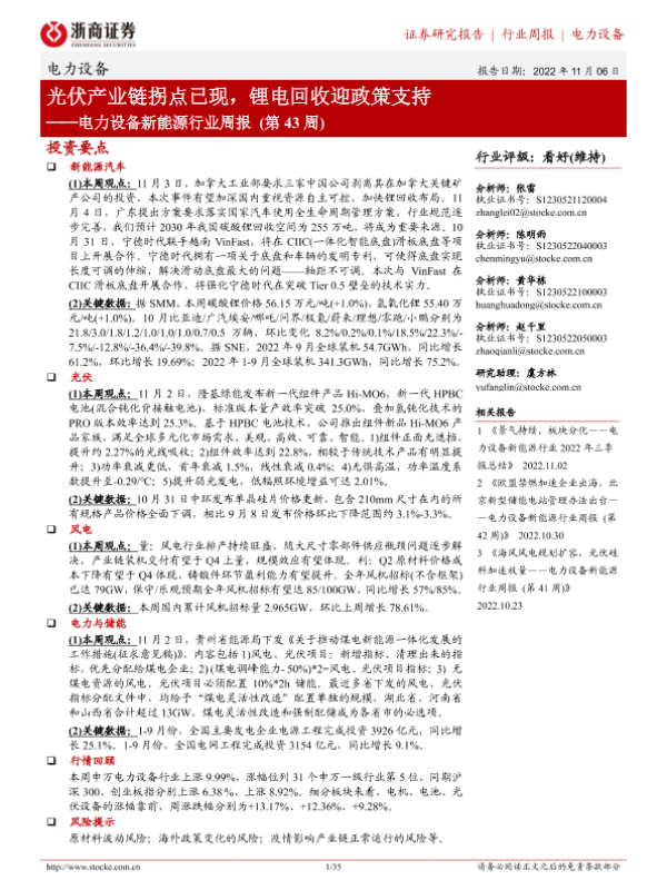 【浙商证券】【20221106】电力设备新能源行业周报(第43周):光伏产业链拐点已现,锂电回收迎政策支持-35页