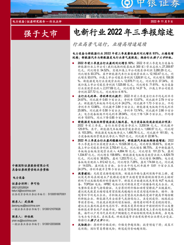 【中银证券】【20221109】电新行业2022年三季报综述:行业高景气运行,业绩高增速延续-10页