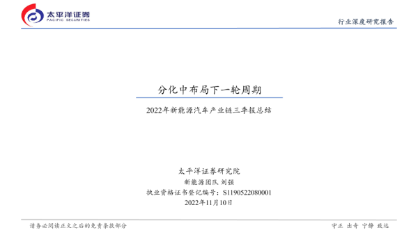 【太平洋证券】【20221110】2022年新能源汽车产业链三季报总结:分化中布局下一轮周期-28页