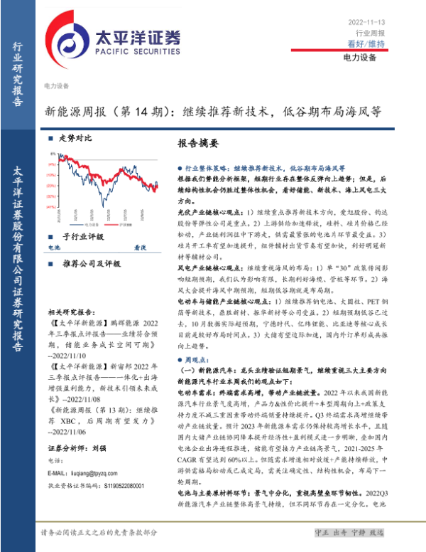 【太平洋证券】【20221113】新能源周报(第14期):继续推荐新技术,低谷期布局海风等-33页