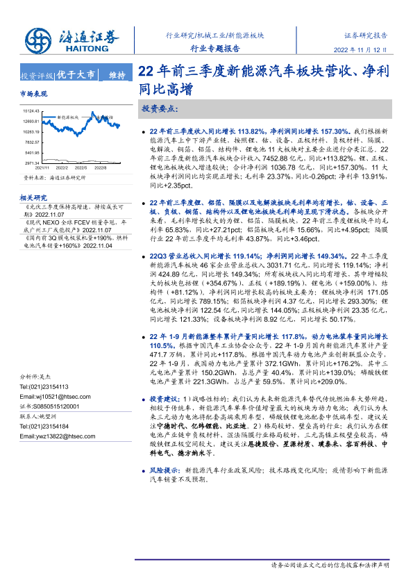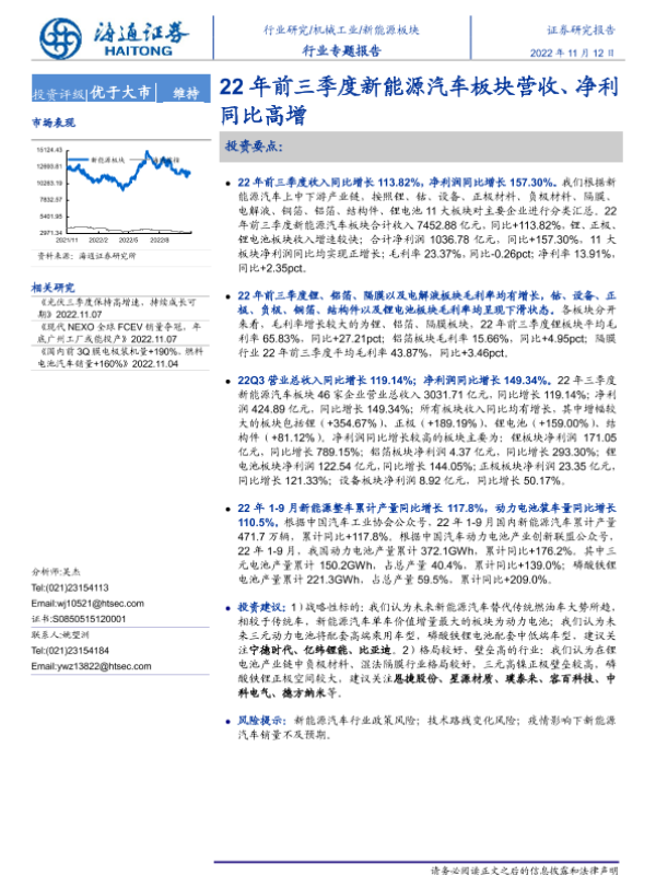 【海通证券】【20221112】22年前三季度新能源汽车板块营收、净利同比高增-23页