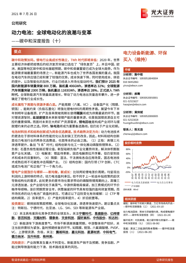 【光大证券】【20210726】碳中和深度报告(十):动力电池:全球电动化的浪潮与变革-77页