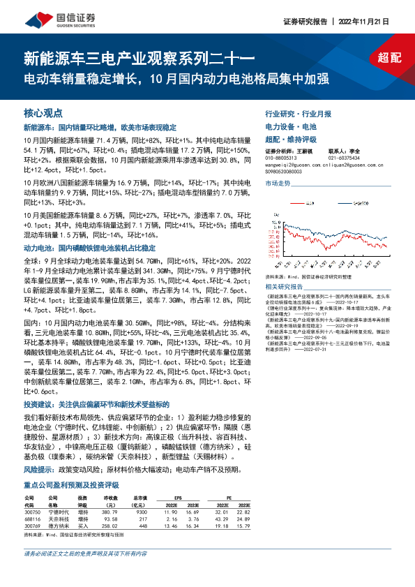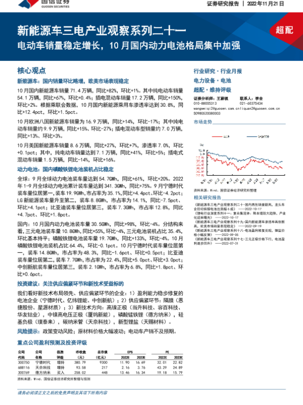 【国信证券】【20221121】电动车销量稳定增长,10月国内动力电池格局集中加强-13页