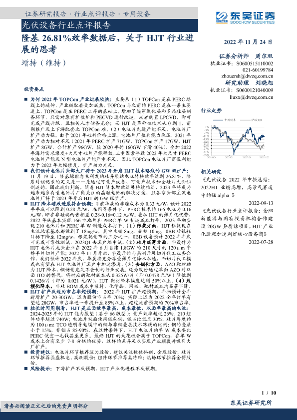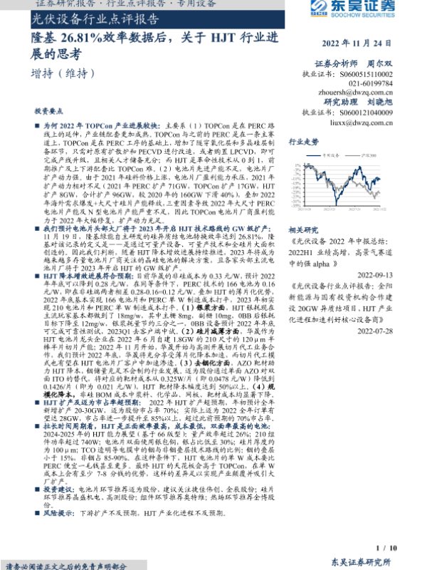 【东吴证券】【20221124】光伏设备行业点评报告:隆基26.81%效率数据后,关于HJT行业进展的思考-10页