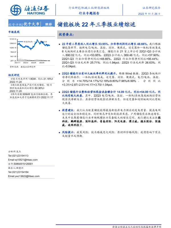 【海通证券】【20221126】新能源板块行业专题报告:储能板块22年三季报业绩综述-18页