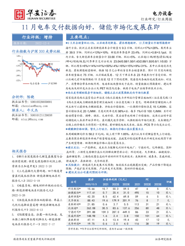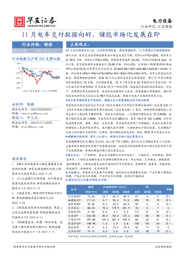 【华安证券】【20221204】11月电车交付数据向好,储能市场化发展在即-25页
