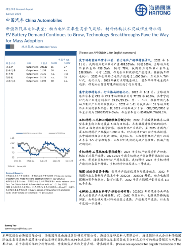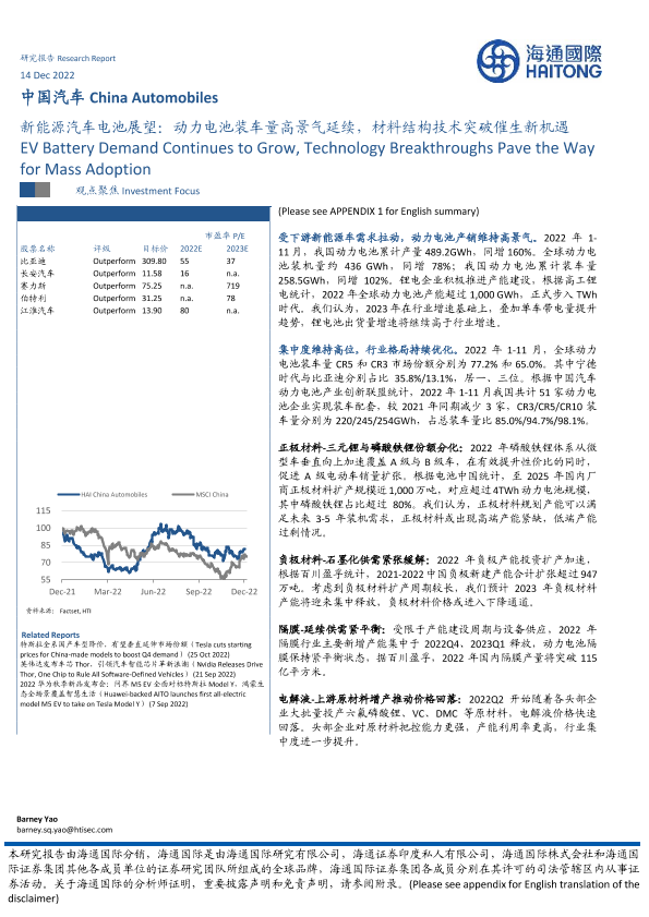 【海通国际】【20221214】新能源汽车电池展望:动力电池装车量高景气延续,材料结构技术突破催生新机遇-17页