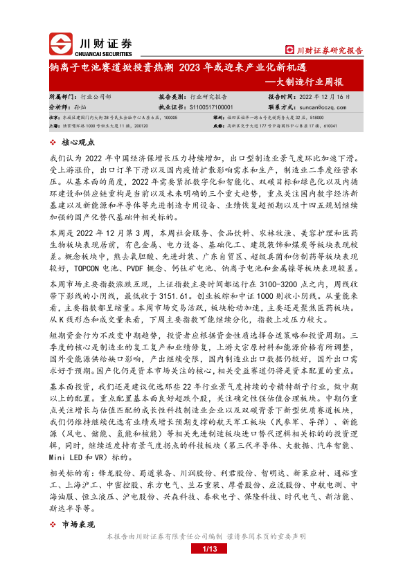【川财证券】【20221216】大制造行业周报:钠离子电池赛道掀投资热潮2023年或迎来产业化新机遇-13页