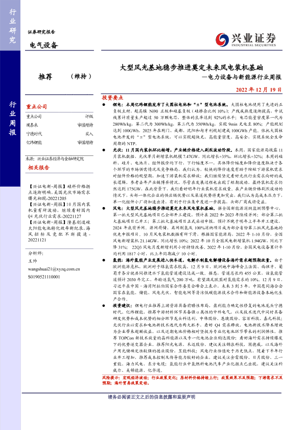 【兴业证券】【20221219】大型风光基地稳步推进奠定未来风电装机基础—电力设备与新能源行业周报-21页