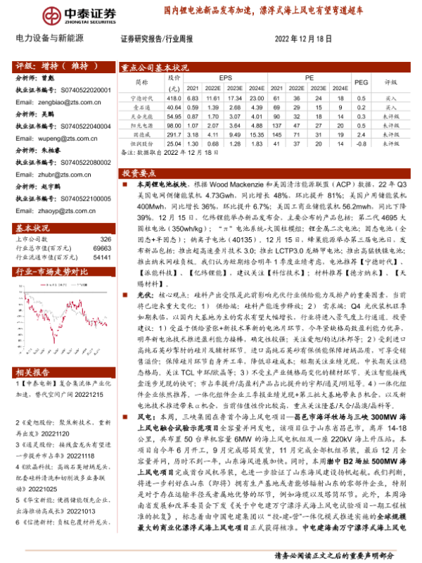 【中泰证券】【20221218】20221218-中泰证券-电力设备与新能源行业周报:国内锂电池新品发布加速,漂浮式海上风电有望弯道超车-30页