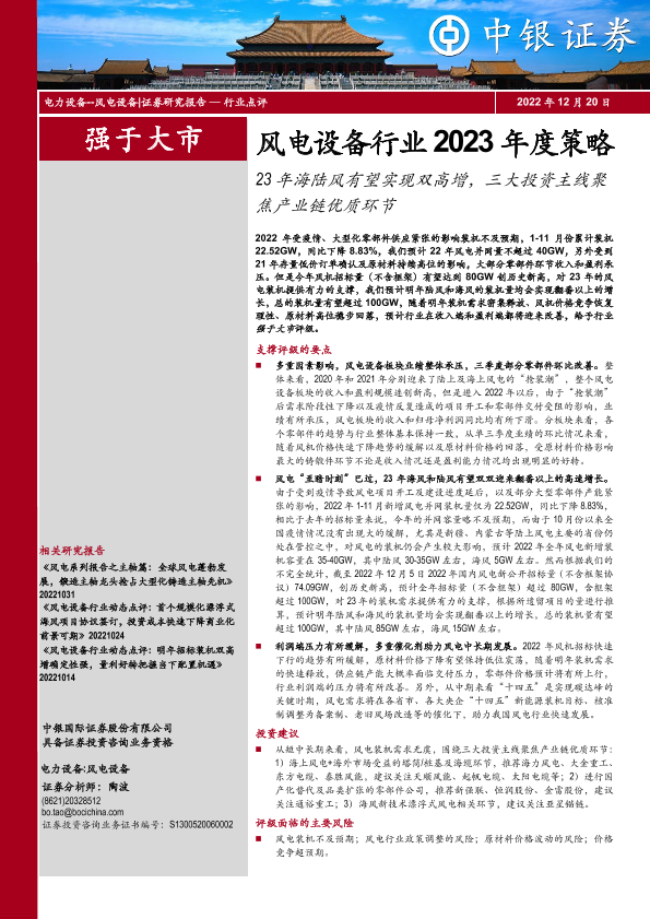 【中银证券】【20221220】风电设备行业2023年度策略:23年海陆风有望实现双高增,三大投资主线聚焦产业链优质环节-29页