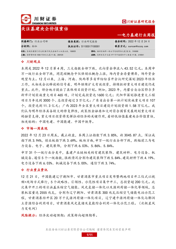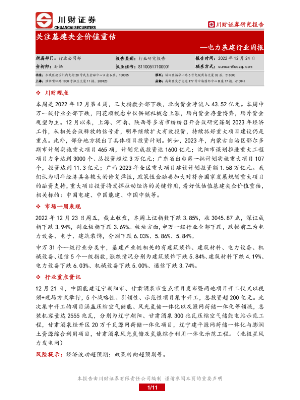 【川财证券】【20221224】电力基建行业周报:关注基建央企价值重估-11页