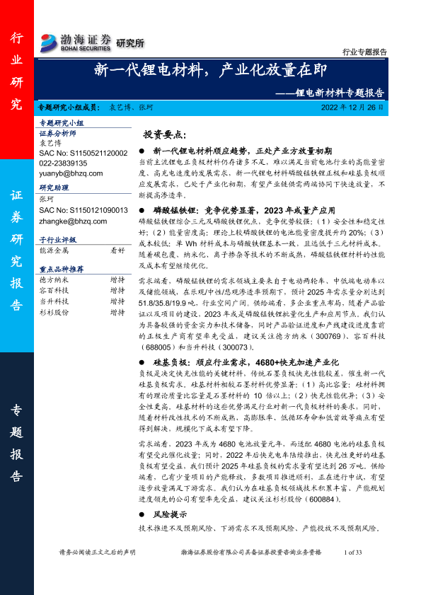 【渤海证券】【20221226】新一代锂电材料,产业化放量在即-33页