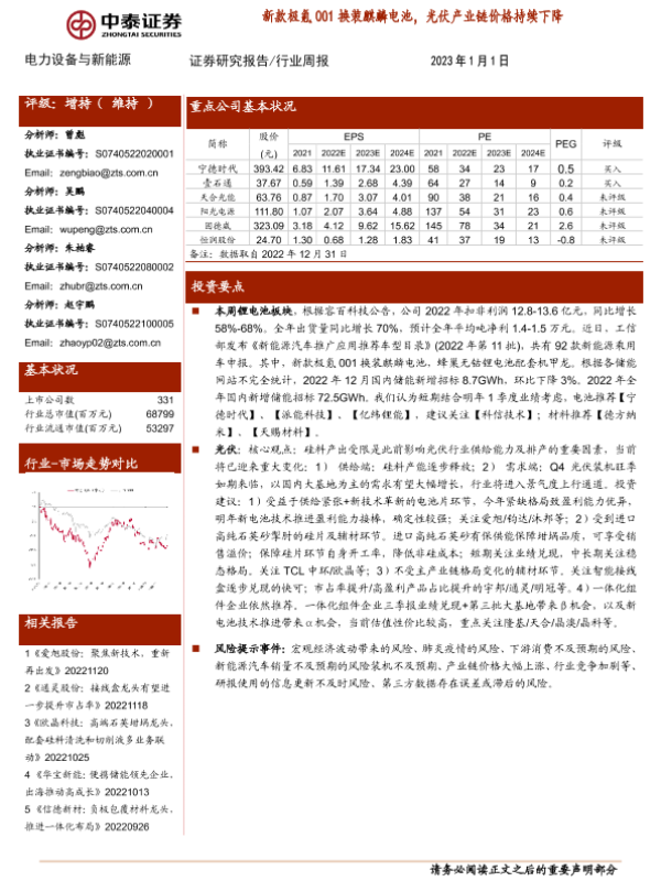 【中泰证券】【20230101】20230101-中泰证券-电力设备与新能源行业周报:新款极氪001换装麒麟电池,光伏产业链价格持续下降-19页