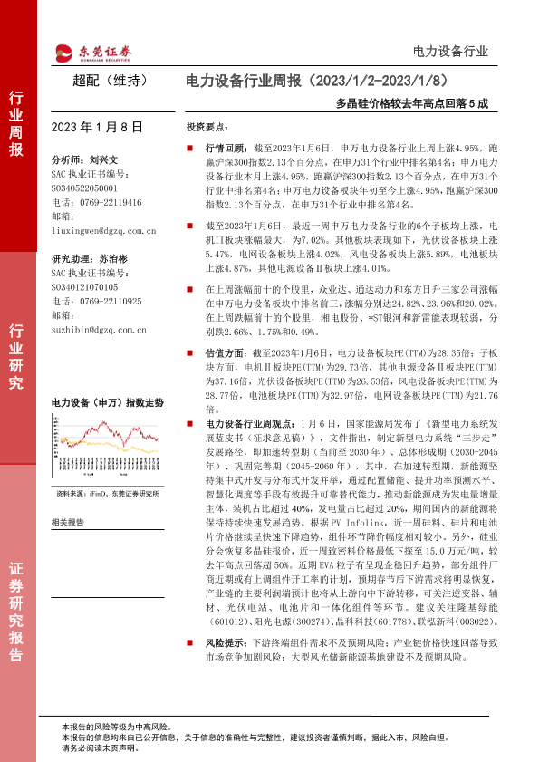 【东莞证券】【20230108】电力设备行业周报:多晶硅价格较去年高点回落5成-12页