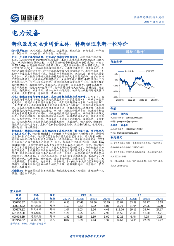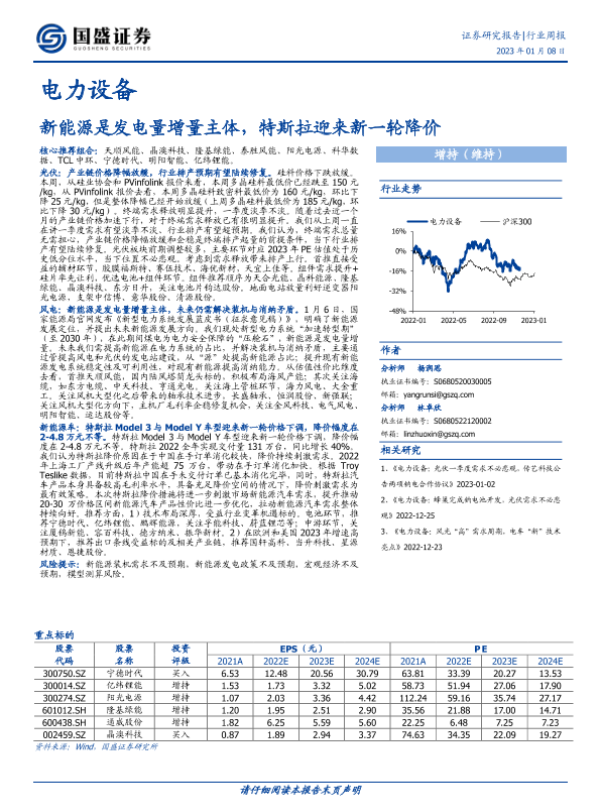 【国盛证券】【20230108】电力设备行业周报:新能源是发电量增量主体,特斯拉迎来新一轮降价-15页