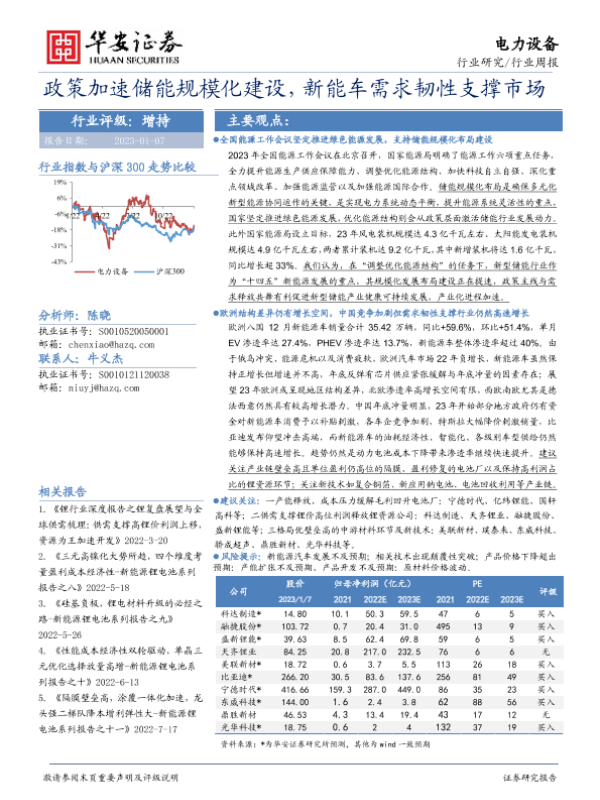 【华安证券】【20230107】20230107-华安证券-电力设备行业周报:政策加速储能规模化建设,新能车需求韧性支撑市场-26页