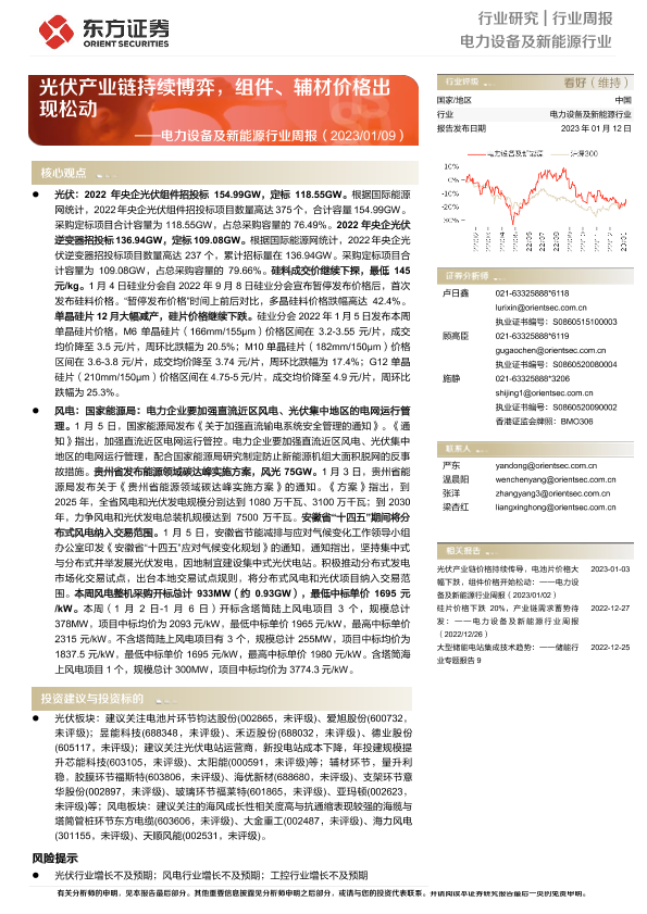 【东方证券】【20230112】电力设备及新能源行业周报:光伏产业链持续博弈,组件、辅材价格出现松动-11页