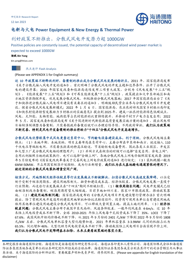 【海通国际】【20230112】电新与火电:利好政策不断推出,分散式风电开发潜力超1000GW-11页