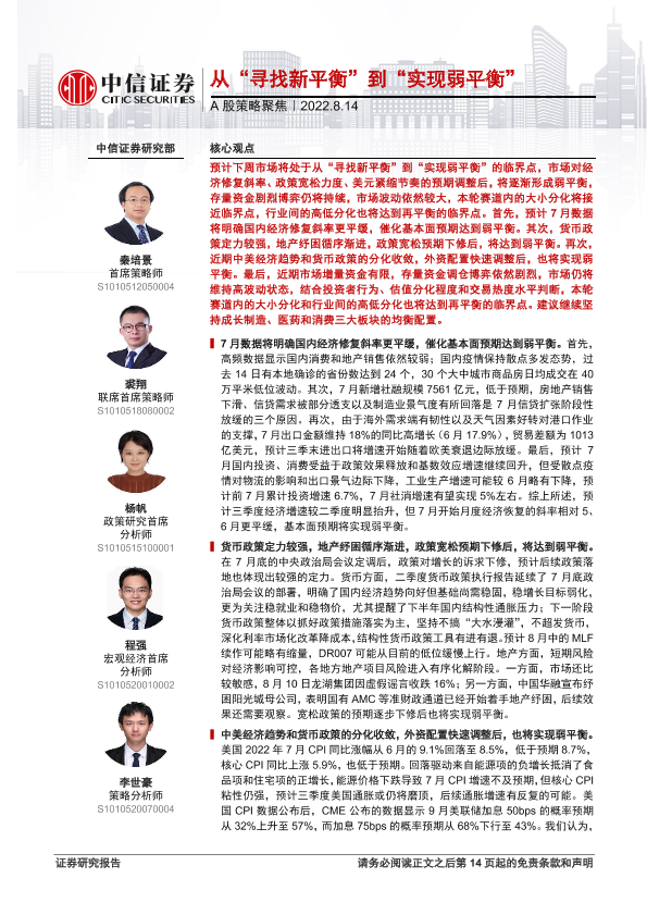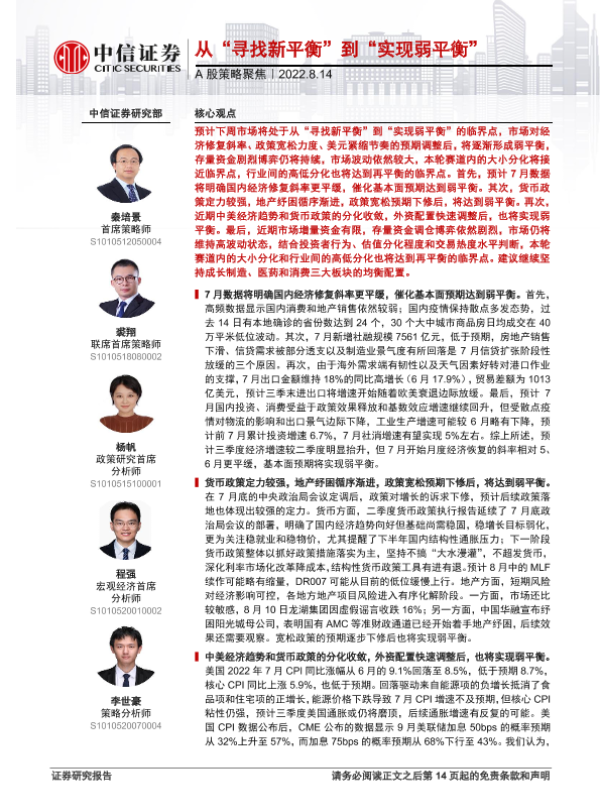 【中信证券】【20220814】A股策略聚焦:从“寻找新平衡”到“实现弱平衡”-15页