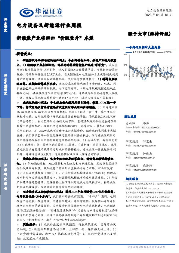 【华福证券】【20230115】20230115-华福证券-电力设备及新能源行业周报:新能源产业将回归“价跌量升”本源-10页
